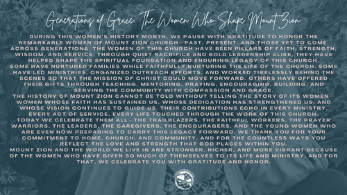 Mt. Zion’s Praise Dance Ministries are looking for people of all ages who have a passion for dance. If interested signup TODAY!