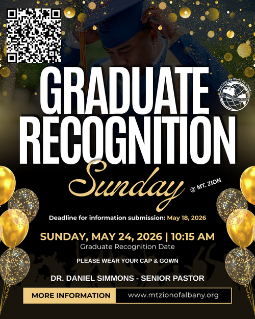 Mt. Zion will recognize its’ Spring 2026 high school and college graduates on May 24th, 2026 during the 10:15AM Worship Service.